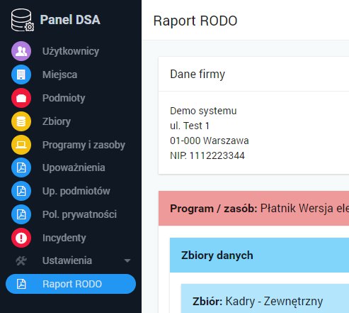 Automatycznie wygenerowany raport na potrzeby RODO.